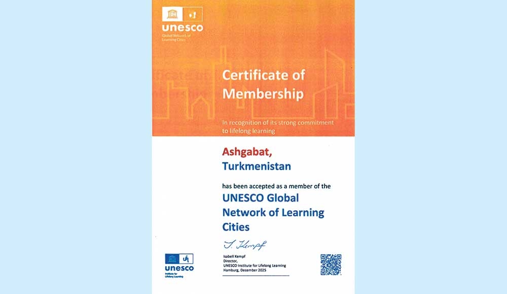 Mälim bolşy ýaly, ýakynda paýtagtymyzyň häkimliginde Aşgabat şäheriniň ÝUNESKO-nyň öwreniji şäherleriniň bütindünýä toruna girizilendigi baradaky güwänamany gowşurmak dabarasy geçirildi. Ýurdumyzyň ylym we bilim ulgamyny ösdürmekde gazanan ýokary netijeleri, ähli ýaşdaky raýatlaryň ömrüniň bütin dowamynda okamagy hem-de bilimleri özleşdirmegi üçin zerur şertleri döreden Aşgabat şäheri dünýäniň 46 ýurdunyň 72 şäheriniň hatarynda ÝUNESKO-nyň öwreniji şäherleriniň bütindünýä toruna girizildi. Bu çözgüt Türkmenistanyň paýtagtynyň ylym-bilimi ösdürmekde, ähli ýaşdaky raýatlaryň ömrüniň tutuş dowamynda okamagy babatda zerur şertleri döretmekde ýokary netijeleri gazanandygynyň ykrarnamasy boldy.